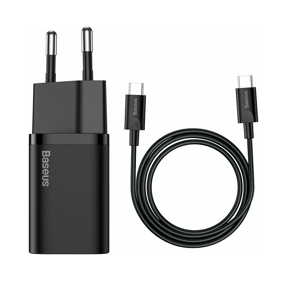 Baseus Φορτιστής με Θύρα USB-C και Καλώδιο USB-C 25W Μαύρος (Super Si) (TZCCSUP-L01) (BASTZCCSUPL01)