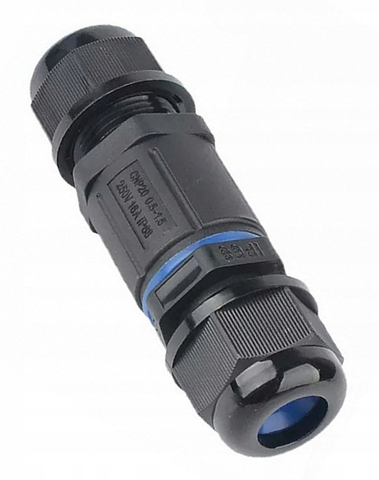 POWERTECH αδιάβροχος σύνδεσμος καλωδίων τροφοδοσίας TOOL-0113, τύπου ταφ, 3pin, IP68, μαύρος