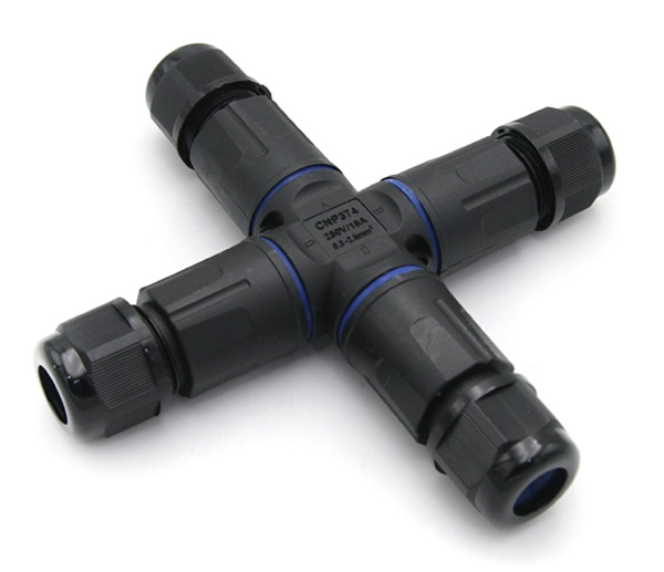 POWERTECH αδιάβροχος σύνδεσμος καλωδίων τροφοδοσίας TOOL-0114, τύπου σταυρός, 3pin, IP68, μαύρος