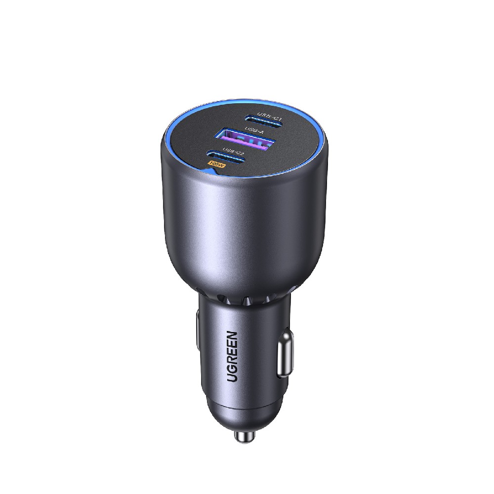 Ο UGREEN 130W φορτιστής αυτοκινήτου προσφέρει ταχύτατη φόρτιση σε τρεις συσκευές ταυτόχρονα, χάρη στις δύο θύρες USB-C και τη θύρα USB-A.